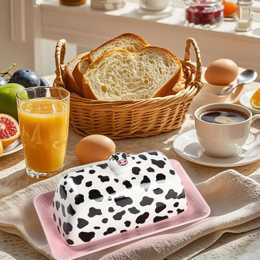 🧈Ceramic Cow Butter Dish with Lid, Farmhouse Style🐮