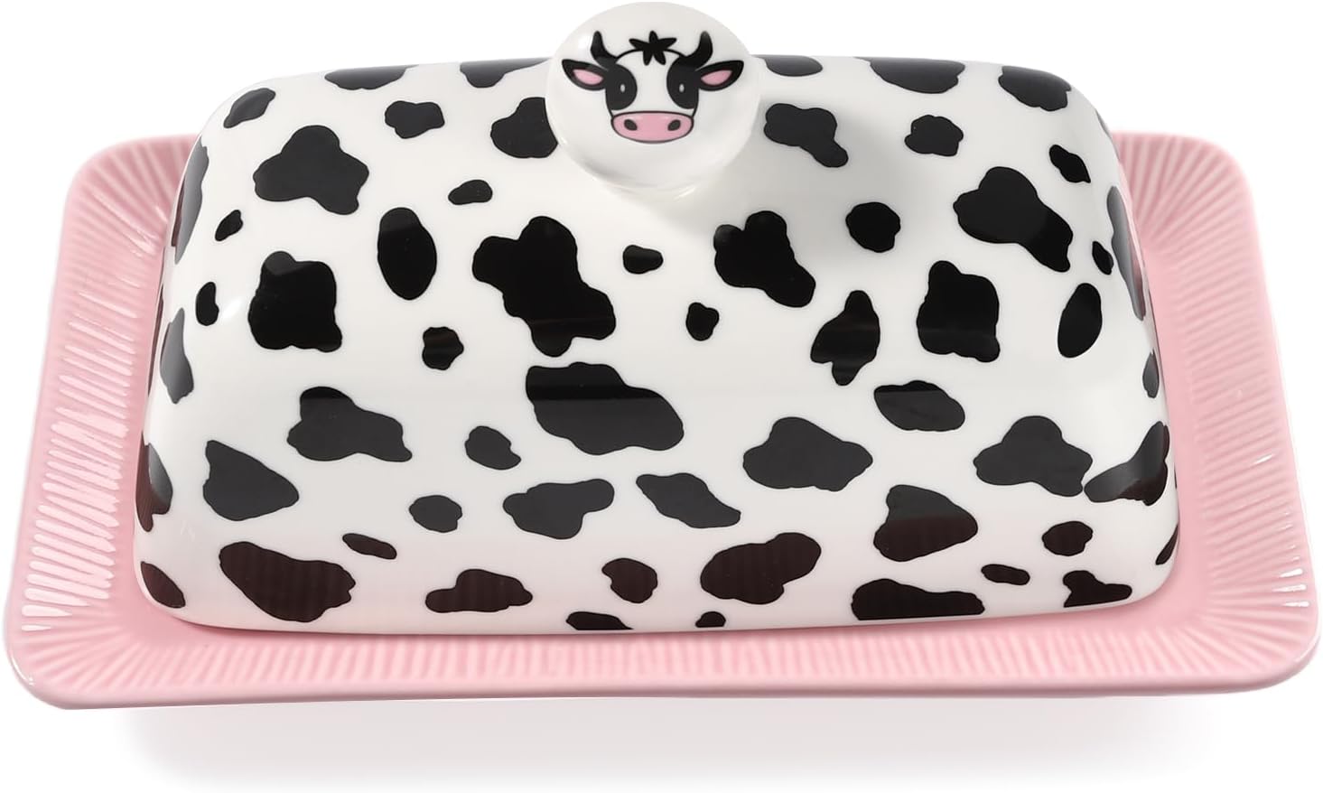 🧈Ceramic Cow Butter Dish with Lid, Farmhouse Style🐮