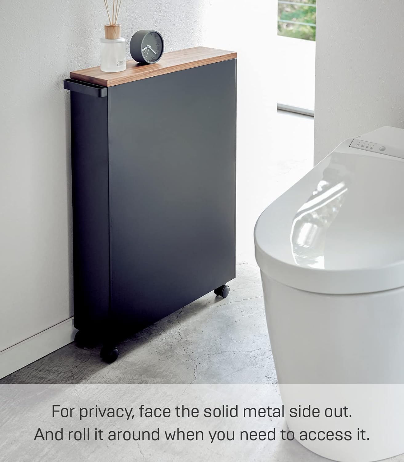 The Slim Rolling Bathroom Cart brings minimalist Japanese design to everyday storage. With a slender, space-saving profile and smooth rolling wheels, it fits perfectly between cabinets, beside the toilet, or along narrow walls. A steel frame paired with a wooden top creates a clean, modern aesthetic, while its discreet form keeps any space organized with effortless style.