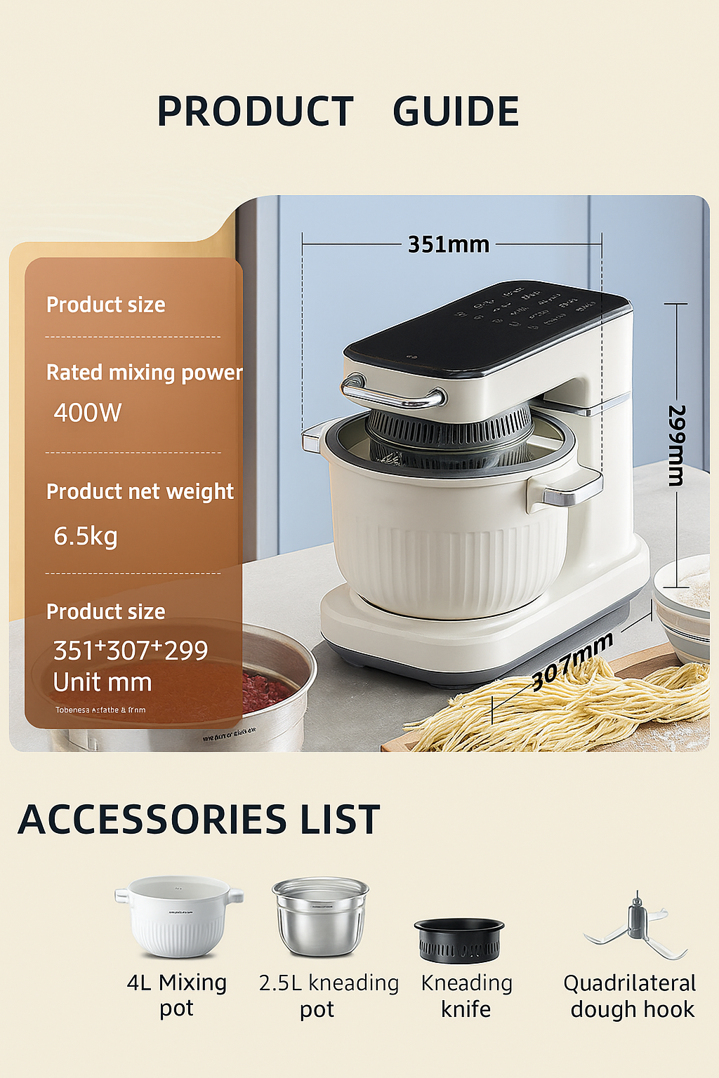 - Family-Sized 4L Bowl – Durable stainless steel, ideal for 5+ servings.
